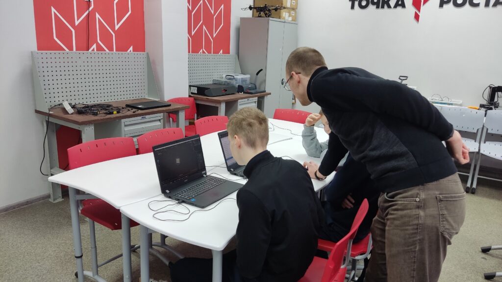 На занятиях по робототехнике ребята готовились к участию в соревнованиях, занимались сборкой моделей роботов для кегельринга и траектории. Программировали, тестировали и дорабатывали своих роботов.